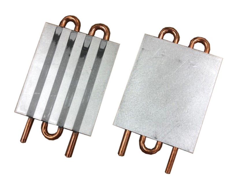 Wakefield- Vette’s fully buried tube liquid cold plates have the ability to cool both sides of the cold plate because of it’s positioning within the base plate. Another key feature of the fully buried tube is that it is not exposed to the outside environment. Some engineers prefer the epoxy layer above the tube to protect the tube from leakage.