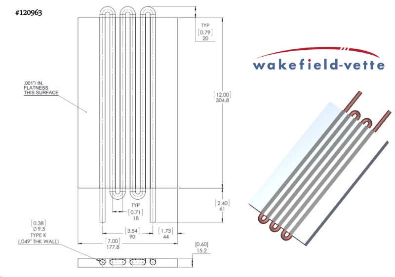 Wakefield- Vette’s fully buried tube liquid cold plates have the ability to cool both sides of the cold plate because of it’s positioning within the base plate. Another key feature of the fully buried tube is that it is not exposed to the outside environment. Some engineers prefer the epoxy layer above the tube to protect the tube from leakage.