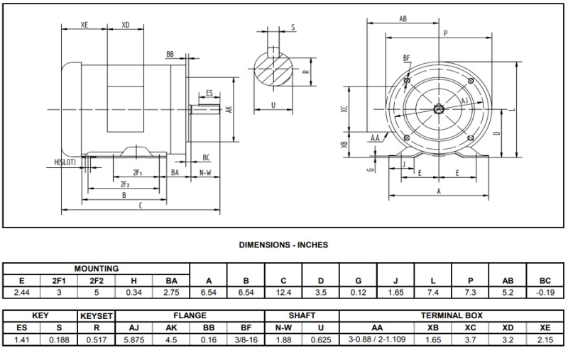 Motor accepts 230/460 VOlt input. Ball bearing, Nema 56 frame, 5/8" shaft.
