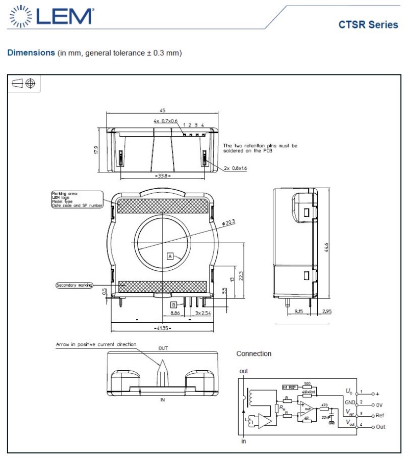 Single phase or three phase nominal current measurement up to +/- 30A per wire (DC or AC)