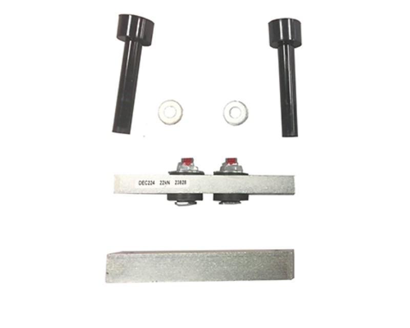 Clamp includes: Clamp Head, Threaded Base Block, Clamp insulators, & Washers