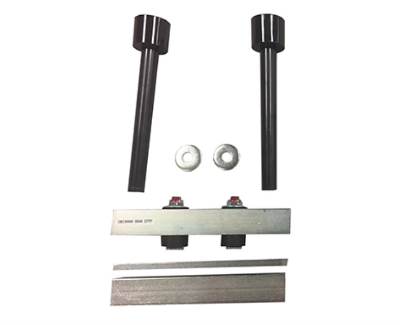Clamp includes: Clamp Head, Threaded Base Block, Clamp insulators, & Washers