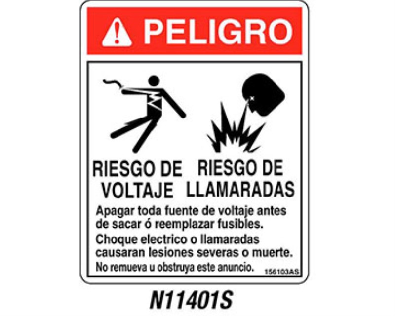 Turn off all voltage sources before removing or replacing fuse. Electric shock or flash will cause severe injury or death. Do not remove or cover this sign.