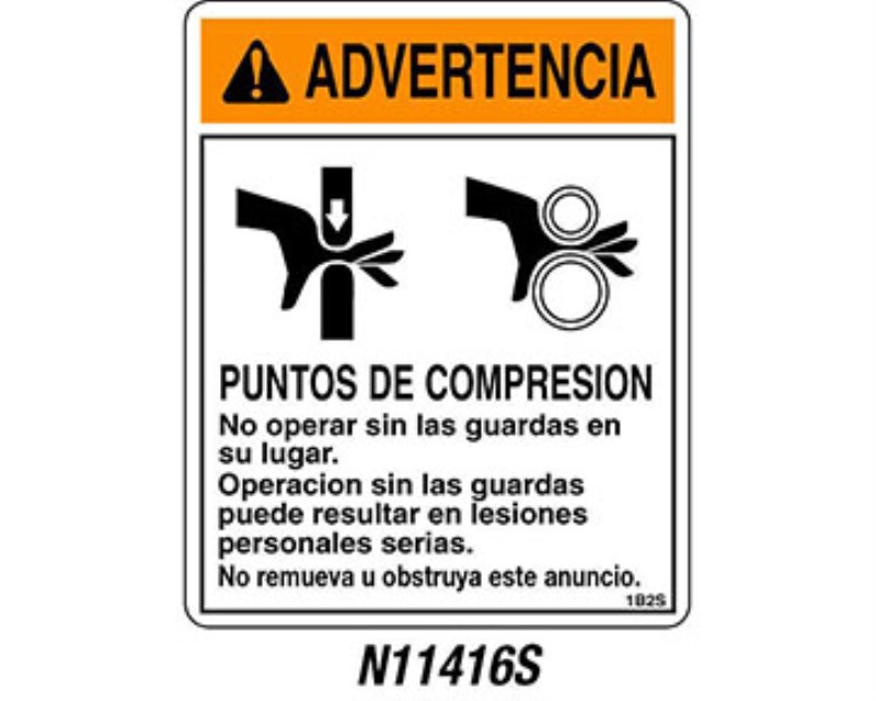 Do not operate without guards in place. Operation without guards may result in serious personal injury. Do not remove or cover this sign.
