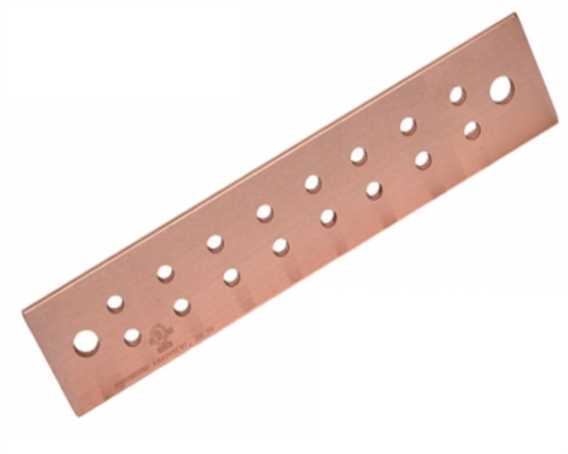 .25" X 2" X 10" COPPER GROUND BAR WITH 16 HOLES